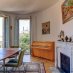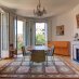 La sala da pranzo, anch'essa decorata con un camino in marmo, offre uno spazio caldo.